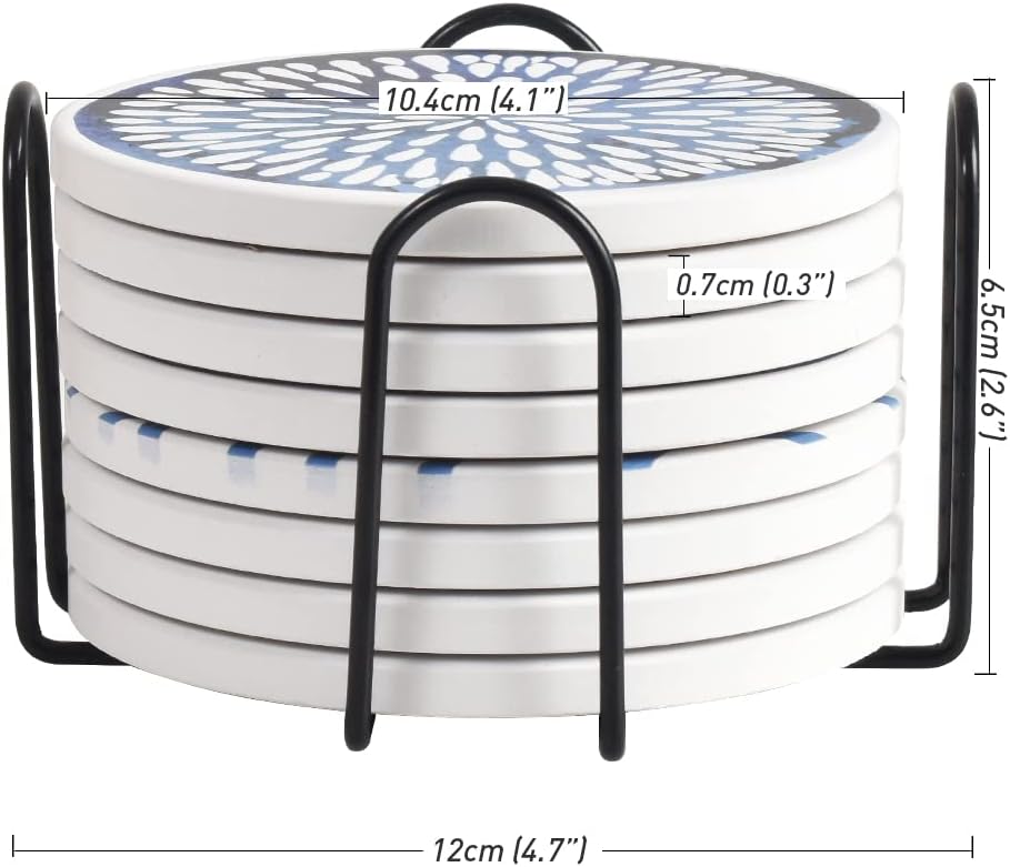 ✅ Chłonna Ceramika: Górna warstwa podstawek jest wykonana z chłonnej ceramiki, która skutecznie wchłania wilgoć ze skraplających się napojów. Dzięki temu Twój stół pozostanie suchy i wolny od plam oraz mokrych śladów.