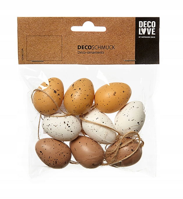 Przedstawiamy zestaw 9 dekoracyjnych jajek wielkanocnych do zawieszenia, utrzymanych w naturalnej kolorystyce. Każde jajko posiada delikatny nakrapiany wzór, dodający im uroku i elegancji.