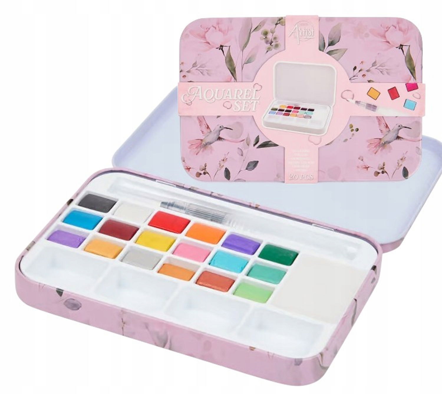 Zestaw Artystyczny Malarski Akwarele 18 KOLORÓW FARBY AKWARELOWE PĘDZELEK