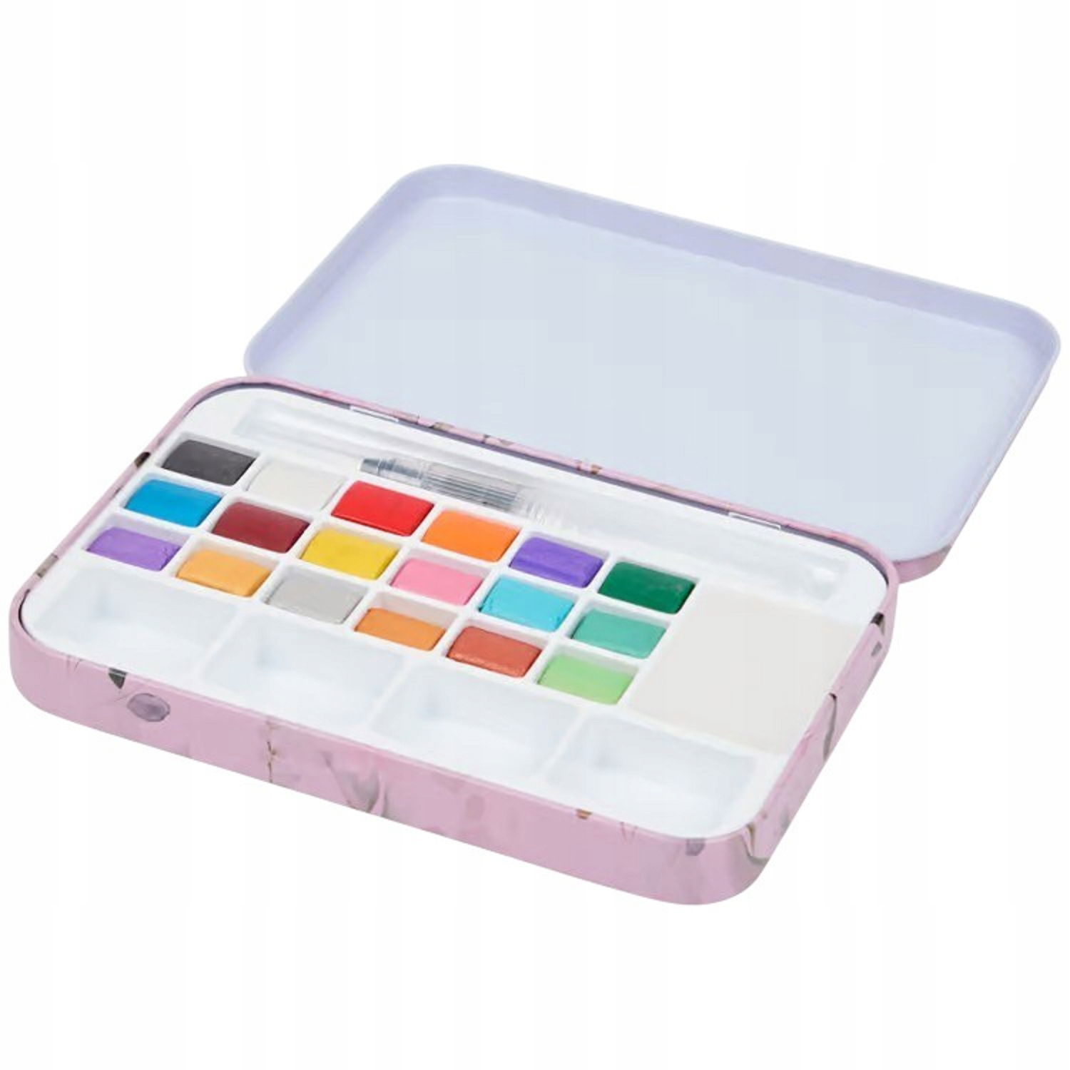 - 18 kolorów farb akwarelowych: bogata paleta barw pozwala na tworzenie wyjątkowych dzieł. Każdy kolor umieszczony jest w osobnej przegródce, co ułatwia wybór I mieszanie barw.