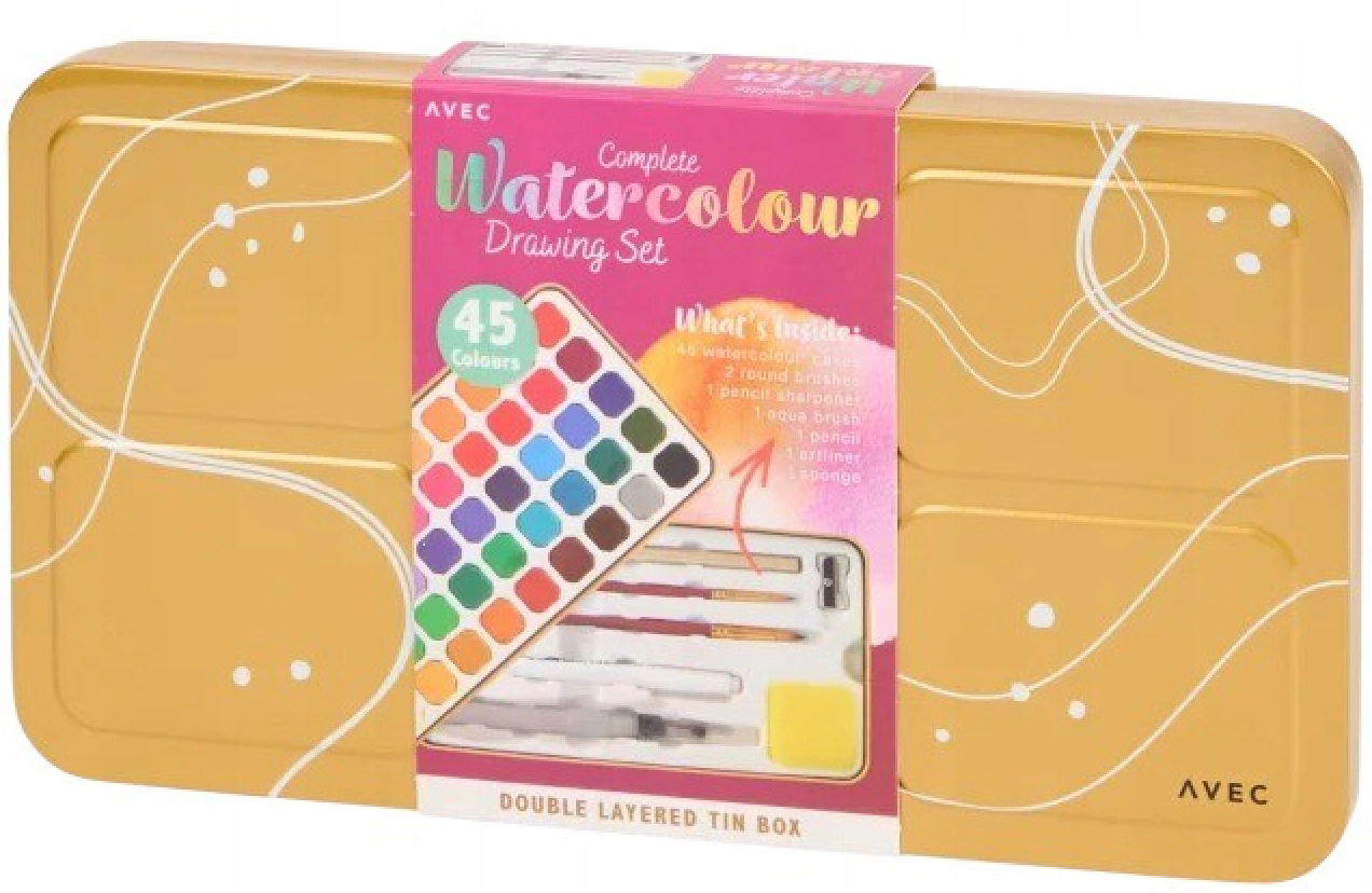 Farby Akwarelowe 45 KOLORÓW AVEC 52 ELEMENTY