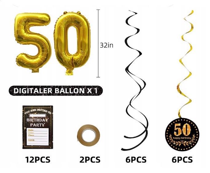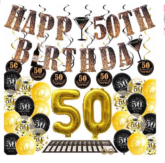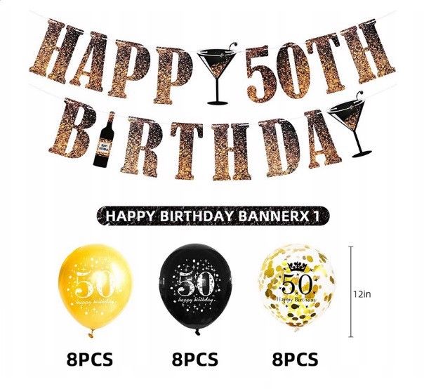 Zestaw balonow dekoracjo 50 urodziny czarno zote