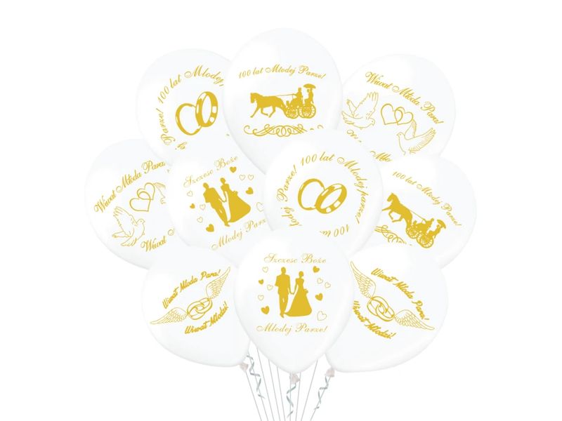 Gotowy zestaw balonów na wykonanie kompozycji z użycie helu na uroczystość z okazji ślubu. Zestaw balonów ślubnych w kolorze ecru z wzorami ślubnymi, idealnie będzie pasował do wykonywanych zdjęć podczas imprezy lub sesji fotograficznej.