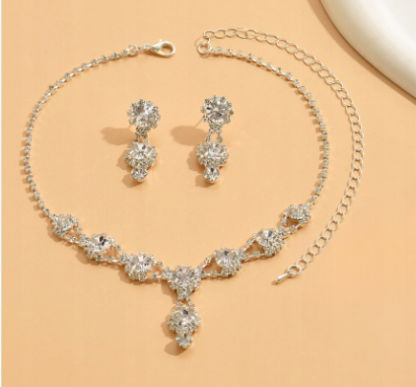Zestaw Biżuterii Kolczyki Naszyjnik Ślub Srebrny Cyrkonie Kryształy