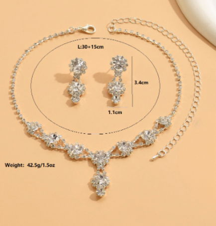 Zestaw Biżuterii Kolczyki Naszyjnik Ślub Srebrny Cyrkonie Kryształy B30