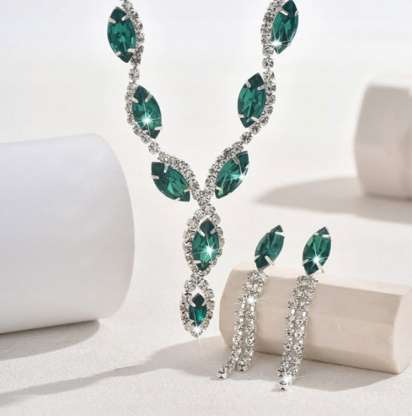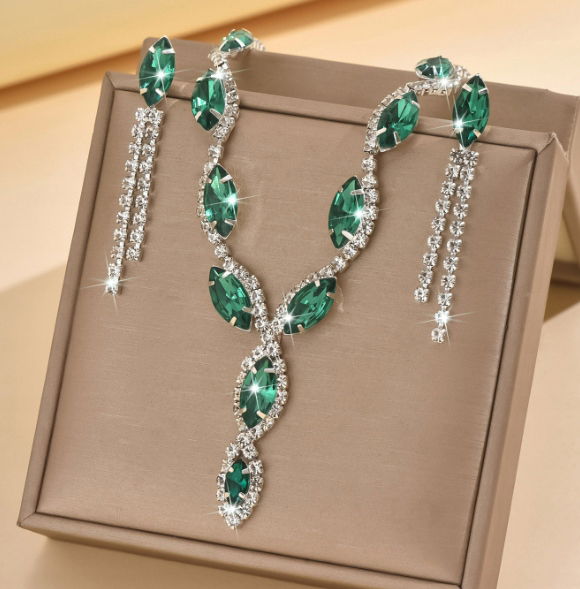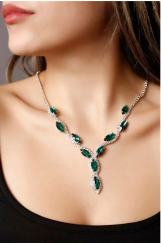 Zestaw Biżuterii Komplet Naszyjnik Kolczyki Srebrny Ślubny Cyrkonie Zielony