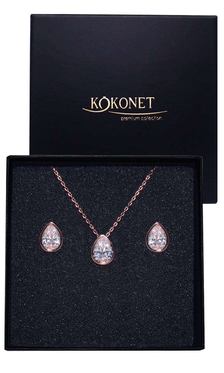 ZESTAW biżuterii w pudełku na prezent RÓŻOWE ZŁOTO kolczyki naszyjnik