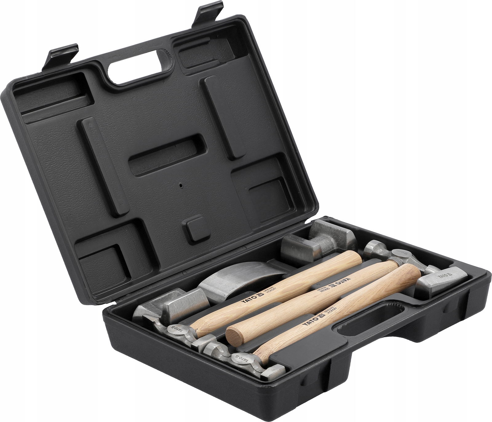 Zestaw w walizce z tworzywa przeznaczony do ręcznego kształtowania blach, przy pracach warsztatowych w motoryzacji lub w pracach dekarskich.