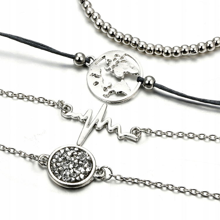 Zestaw bransoletka łańcuszek rytm serca kamienie