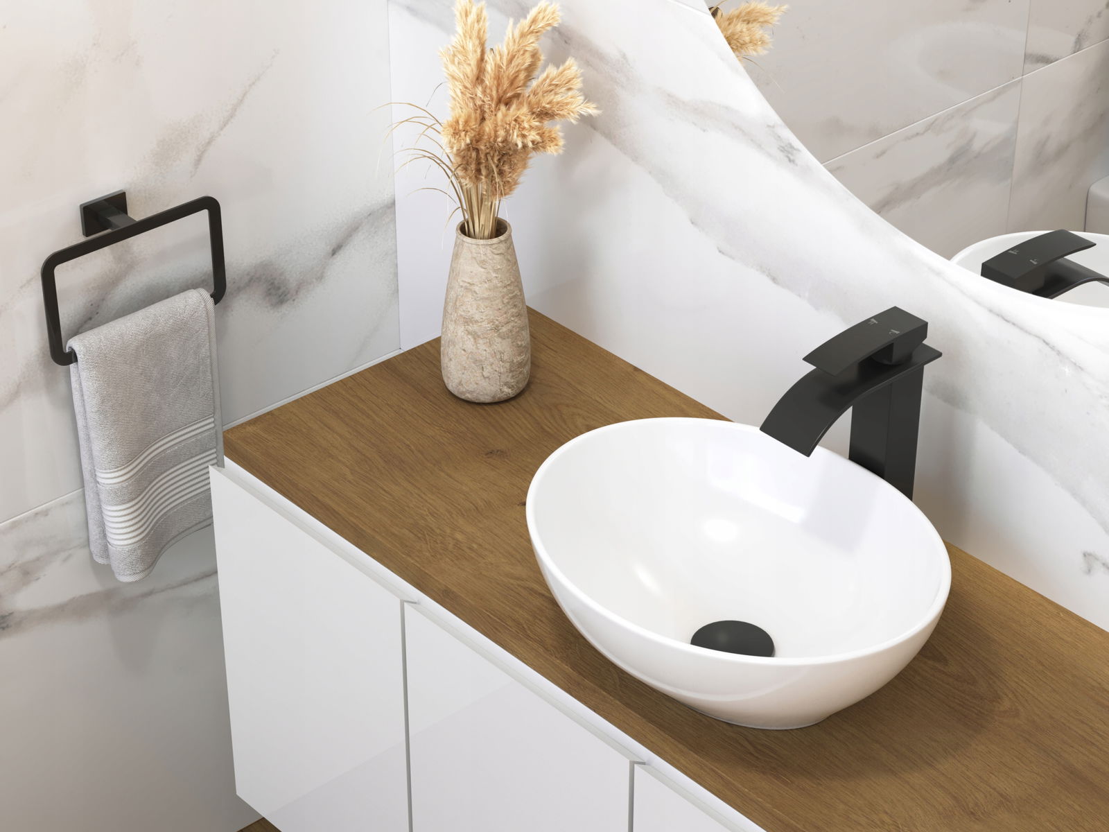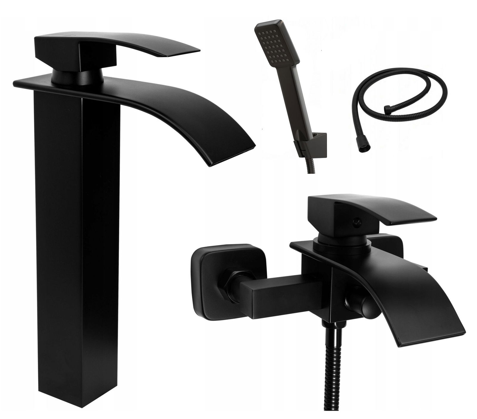 ZESTAW CZARNY BATERIA WANNOWA WODOSPAD UMYWALKOWA