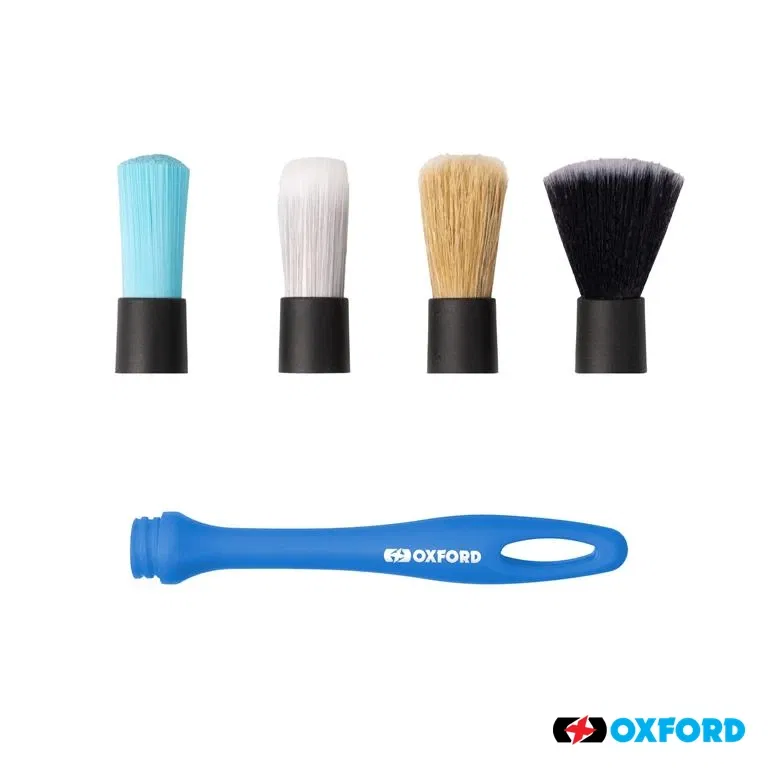 Zestaw czterech szczotek detailingowych OXFORD OX342, przeznaczony do kompleksowego czyszczenia motocykli i innych pojazdów. Różne rozmiary i kształty szczotek pozwalają na precyzyjne dotarcie do trudno dostępnych miejsc, takich jak szprychy, zaciski hamulcowe czy elementy silnika. Wykonane z trwałych materiałów, zapewniają skuteczne i bezpieczne usuwanie brudu bez ryzyka zarysowania powierzchni.