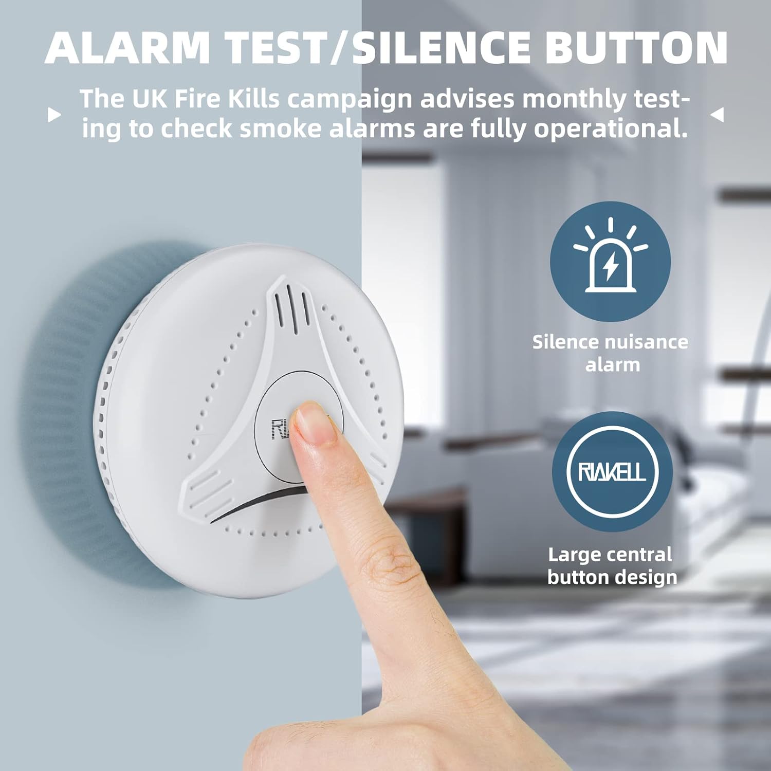Podczas testowania czujnika dymu przy użyciu sprayu testowego należy spryskać spray w komorze dymowej czujki. (Spray testowy można nabyć w serwisie Amazon. Podczas testowania czujnika dymu należy skierować dym na komorę dymową podczas testowania czujnika dymu i wdmuchiwać go do komory dymu. Jeśli dym nie dostanie się do komory dymu, czujnik nie będzie rozległy. Nigdy nie należy używać otwartego ognia, aby sprawdzić czujkę dymu. Mogą one uszkodzić alarm lub zapalić materiały łatwopalne i spowodować ogień.