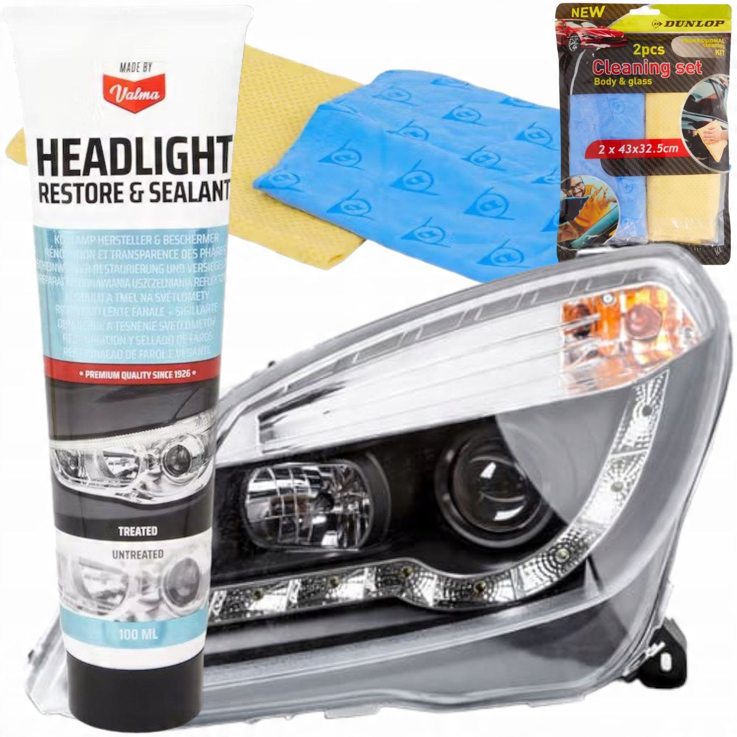 PASTA DO REFLEKTORÓW LAMP SAMOCHODOWYCH 100ML ZESTAW CZYSZCZĄCY ŚCIERECZKI