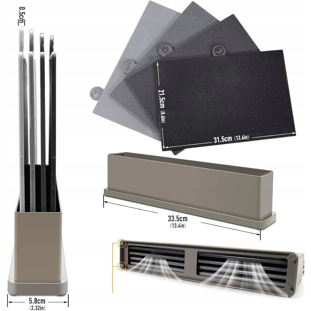 ✅ Praktyczny stojak do przechowywania utrzymuje porządek w kuchni, pozwala na naturalne suszenie desek i ułatwia szybki dostęp do każdej z nich.