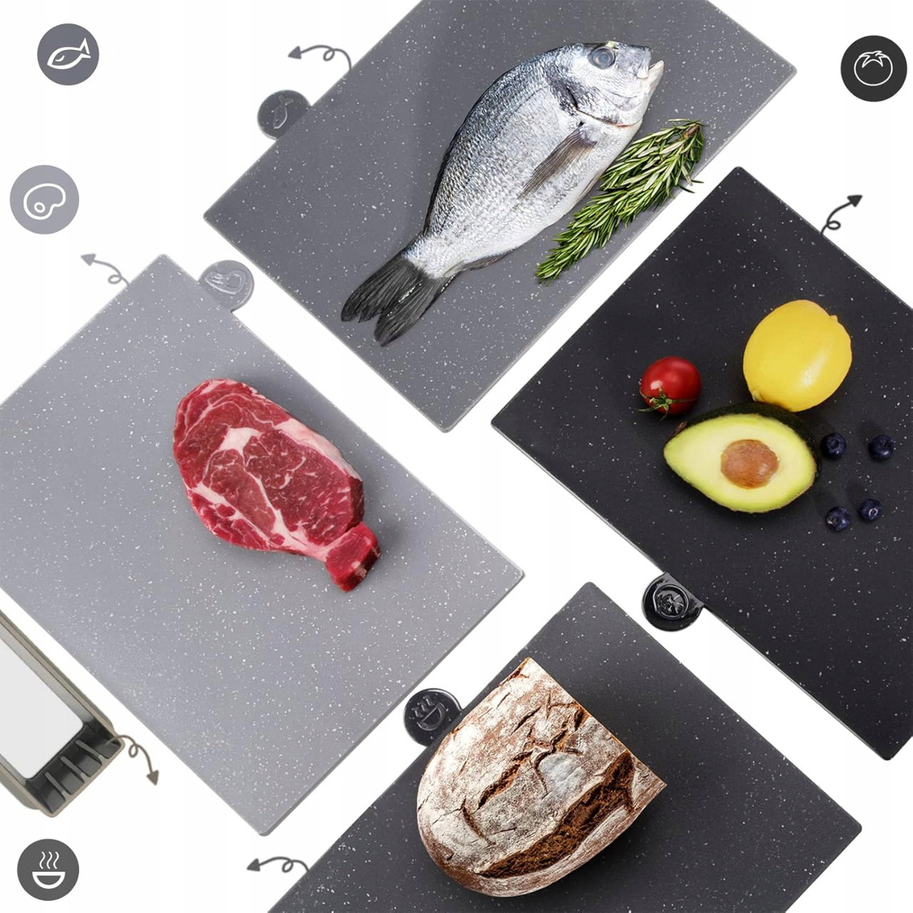 ✅ Zróżnicowane oznaczenia desek umożliwiają przypisanie każdej z nich do innych produktów spożywczych, co ogranicza ryzyko zanieczyszczenia krzyżowego i pozwala zachować świeżość oraz smak przygotowywanych potraw.
