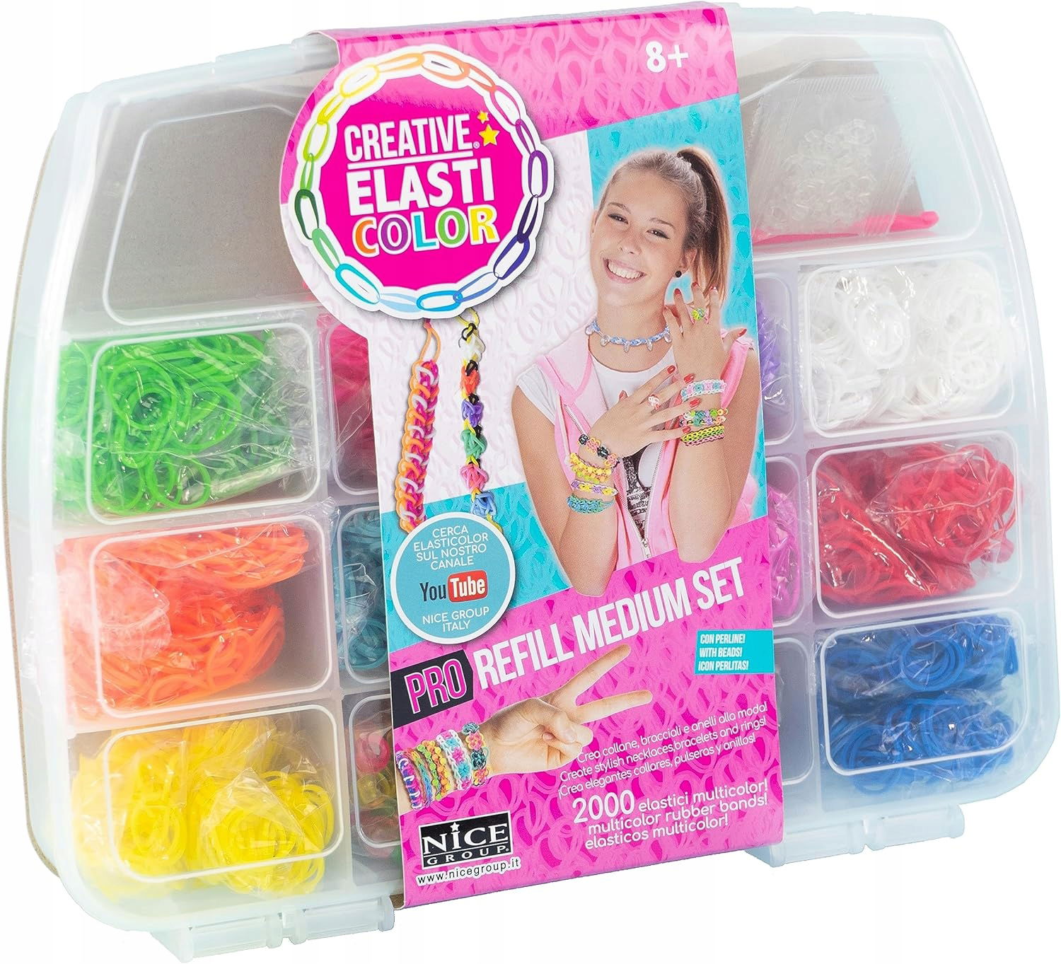 Średni zestaw do tworzenia wielokolorowych, błyszczących i żywych bransoletek, pierścionków i naszyjników, z asortymentem gumek i akcesoriów, które nadają Twojemu wyglądowi.