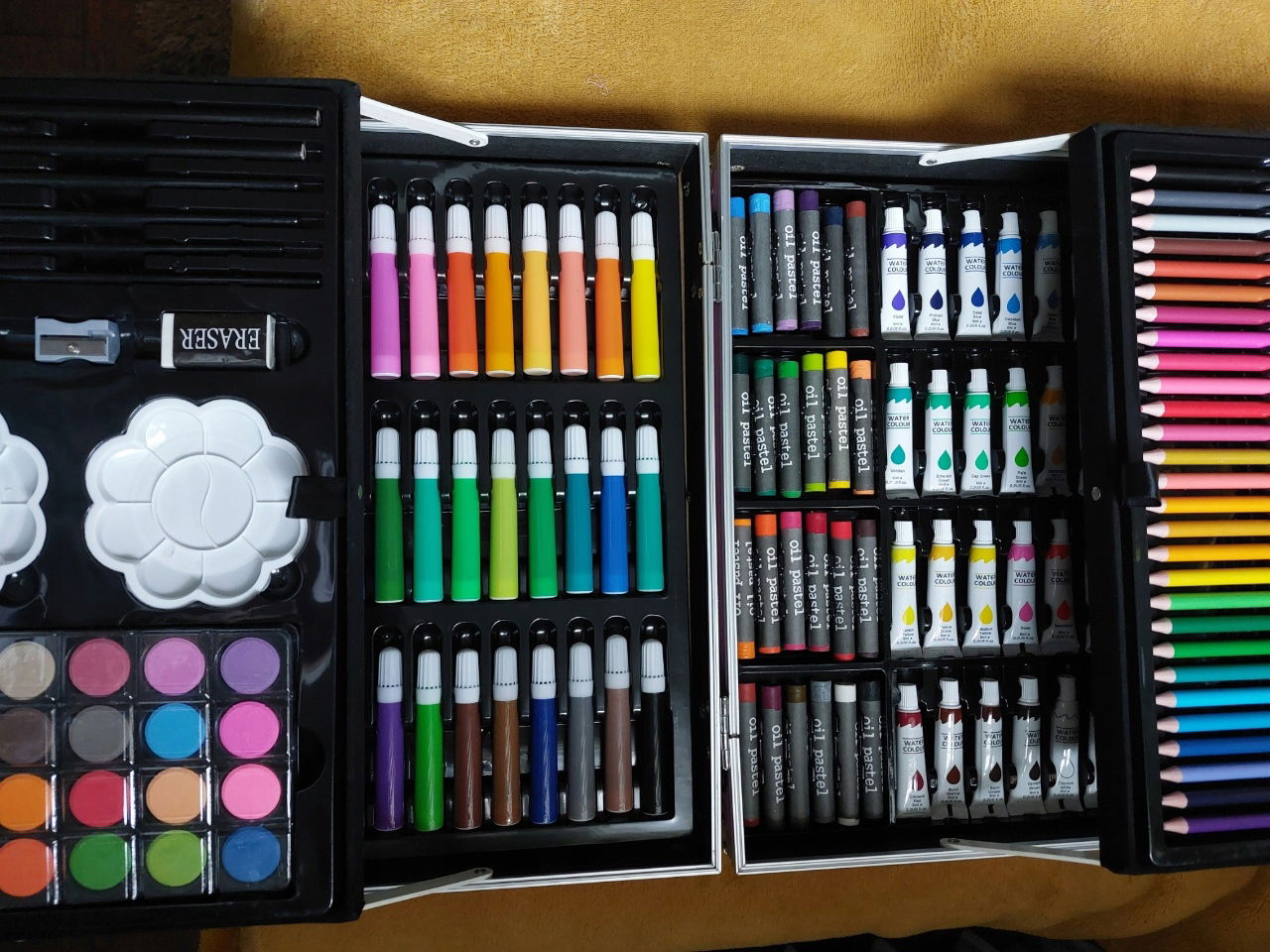 Zestaw dla dzieci do Rysowania Malowania Kredki Farby Pisaki Pastele Walizka
