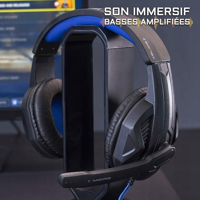 Słuchawki MIKRO-SŁYM IMMERSYWNY. Wysokiej jakości podświetlane słuchawki do gier audio, dokładny i doskonale czysty dźwięk. Poduszki ze sztucznej skóry, regulowany pałąk i gniazdo jack 3,5 mm + splitter. Kompatybilny również z Nintendo Switch, tabletem i smartfonem. Pilot zdalnego sterowania z wbudowanym mikrofonem i pokrętłem głośności dźwięku. System Xtra-Bass zapewniający lepsze zanurzenie w dźwięku, szczególnie w FPS. Ten zestaw słuchawkowy dla graczy wzmacnia każdy efekt dźwiękowy, aby dokładnie wiedzieć, gdzie odbywa się akcja.