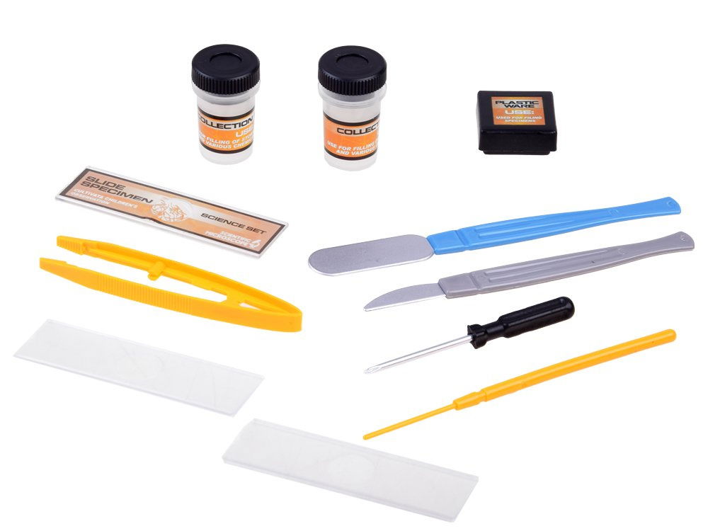 W komplecie znajdziesz szkiełko z preparatem, 2x szkiełko na preparat, 2x kubeczek z zatyczką, pudełeczko na preparat, pęsetę, szpatułkę, skalpel, igłę, śrubokręt oraz instrukcję obsługi. Dzięki temu mikroskopowi, Twoje dziecko będzie mogło rozwijać ciekawość, odkrywać pasje i poznawać fascynujący świat nauki poprzez zabawę.