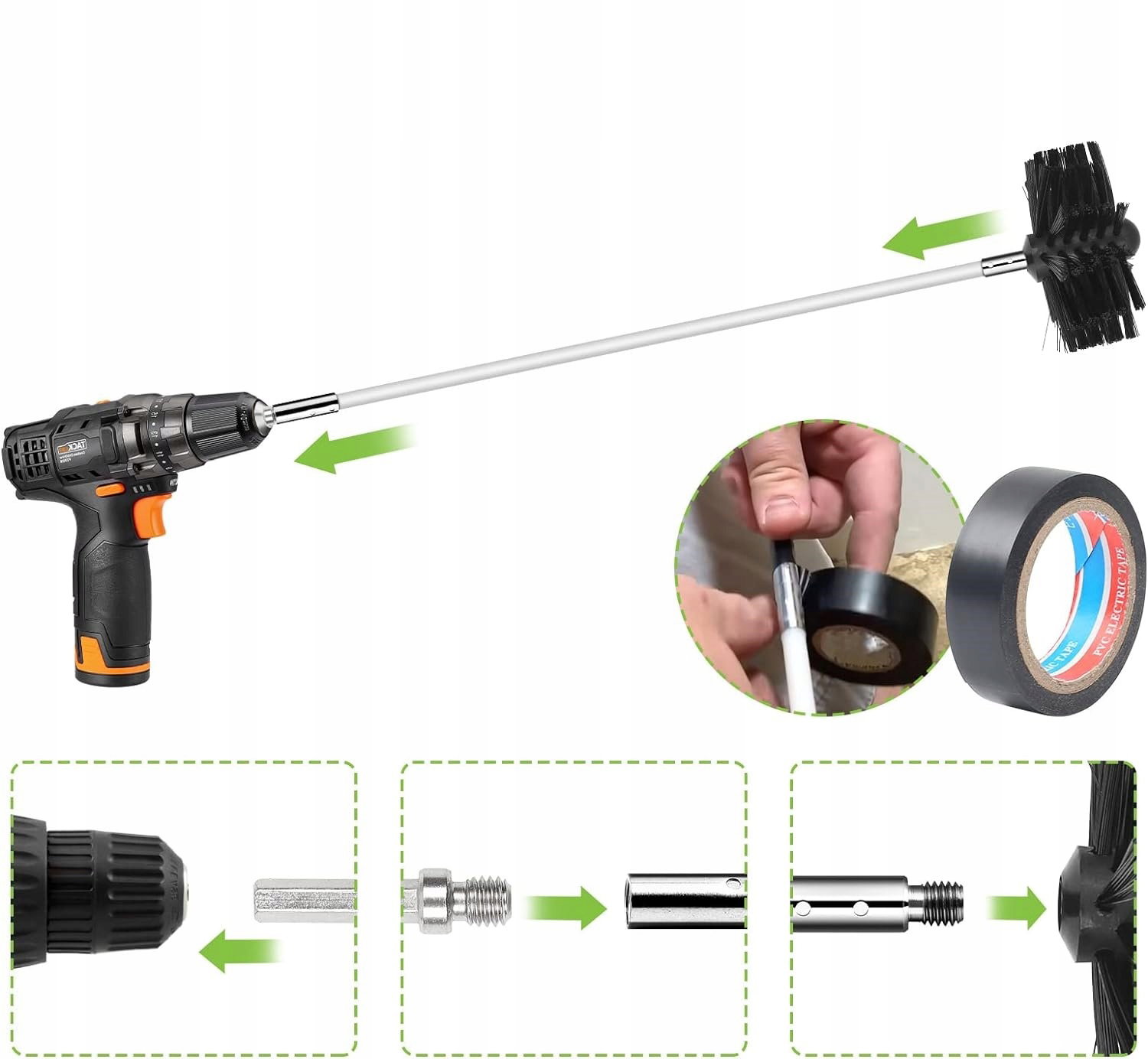 Zestaw jest kompatybilny z wiertarką lub wkrętarką, co daje większą siłę i precyzję podczas czyszczenia. Zapomnij o męczących tradycyjnych metodach, teraz czyszczenie komina jest szybkie i efektywne.