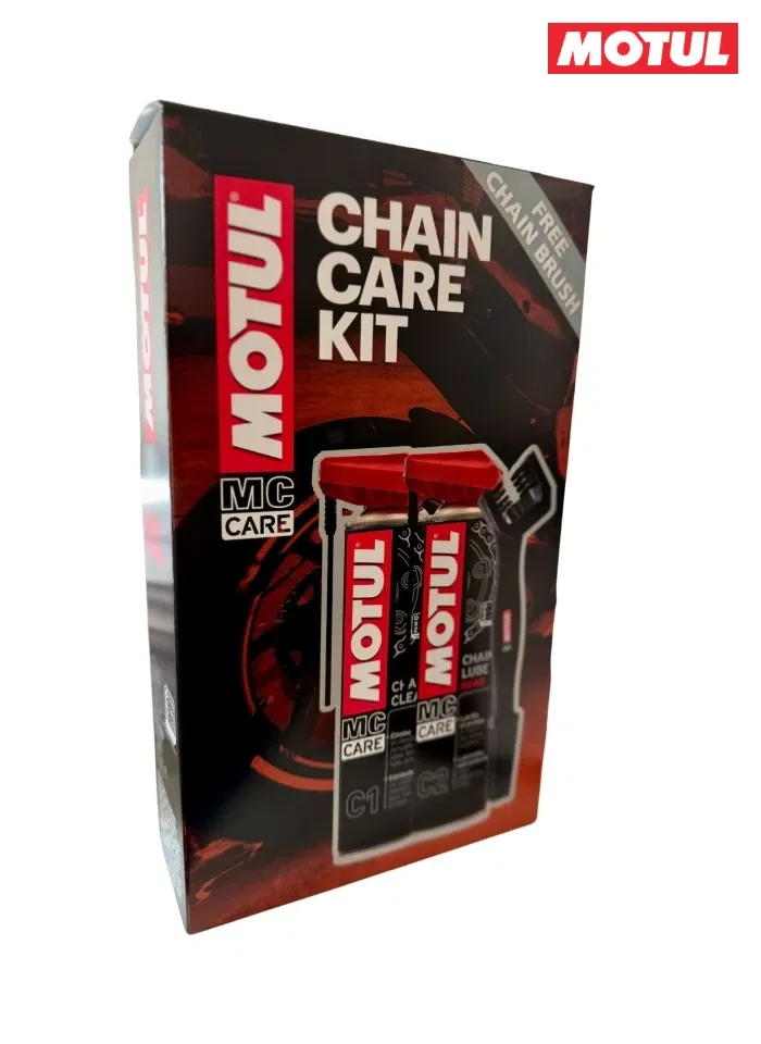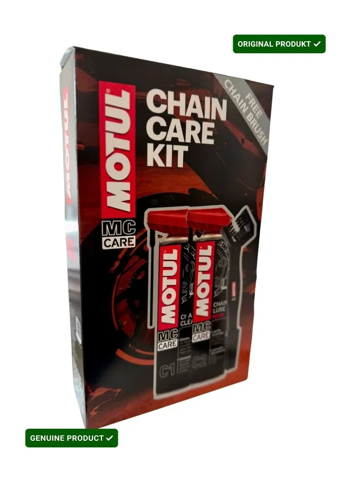 Zestaw Motul Chain Care Kit to kompleksowe rozwiązanie do konserwacji łańcucha napędowego motocykla. Składa się z preparatu do czyszczenia łańcucha (C1 Chain Clean), smaru do łańcucha (C2 Chain Lube Road) oraz specjalnej szczotki. Zapewnia skuteczne usuwanie brudu i optymalne smarowanie, przedłużając żywotność łańcucha i poprawiając jego wydajność.