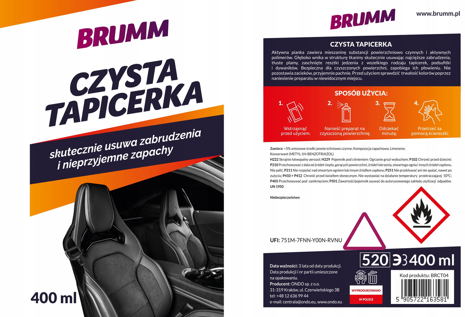 ✅ BRUMM CZYSTA TAPICERKA 400 ml