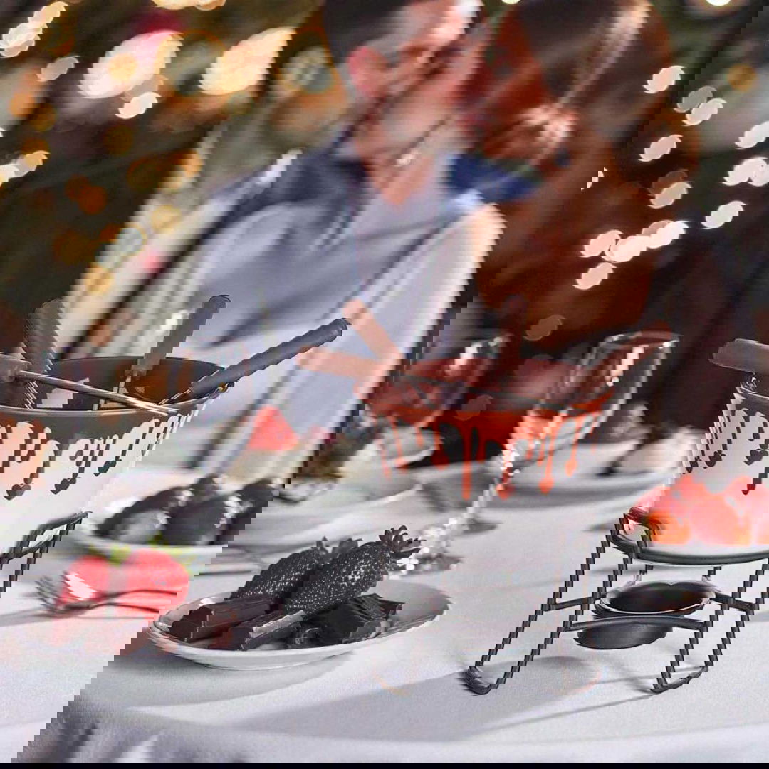 Stwórz wyjątkową atmosferę przy stole i delektuj się ciepłą, aksamitną czekoladą dzięki temu funkcjonalnemu, 6-częściowemu zestawowi do fondue. Idealny dla miłośników słodkości i wspólnego celebrowania smaku.