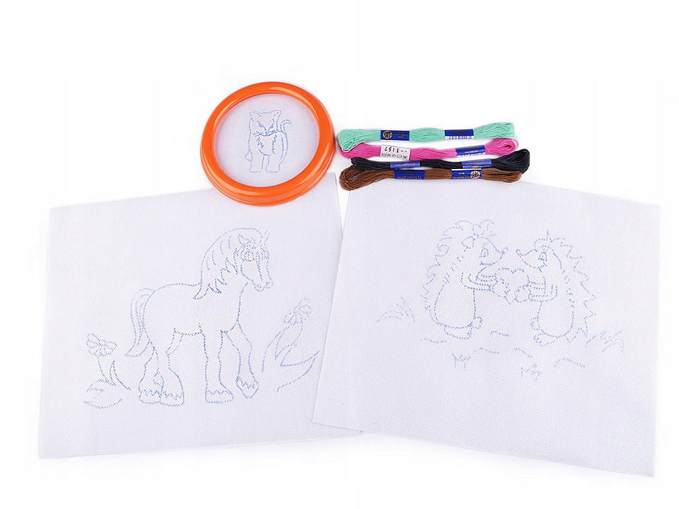 Zestaw do wyszywania dla dzieci to wspaniała okazja do rozwijania kreatywności i zdolności manualnych najmłodszych. Zestaw zawiera okrągłą ramkę z materiałem, na którym nadrukowano wzór, a także cztery wysokiej jakości włóczki muliny wykonane w 100% z bawełny oraz dwa większe płótna (23 x 26 cm) z nadrukowanymi motywami. Dzięki łatwym w obsłudze elementom, dzieci mogą cieszyć się rękodziełem i tworzyć własne, wyjątkowe projekty.