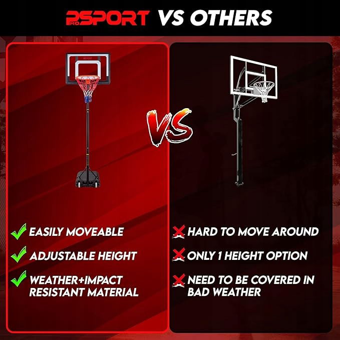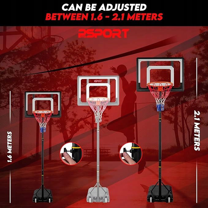 Stalowa tablica do koszykówki jest odporna na pęknięcia i wytrzymuje nawet najtrudniejsze gry w koszykówkę. Siatka kosza jest wykonana z odpornego na warunki atmosferyczne nylonu, dzięki czemu nie można zatrzymać nawet złej pogodzie. Można ustawić wysokość kosza do koszykówki w zakresie od 1,6 m do 2,1 m, aby dopasować go do Twoich postępów i umiejętności. Podstawa kosza do koszykówki jest wypełniona, co przekłada się na najbardziej stabilna. gry w piłkę. Dzięki kółkom na podstawie jest on również łatwy do przenoszenia