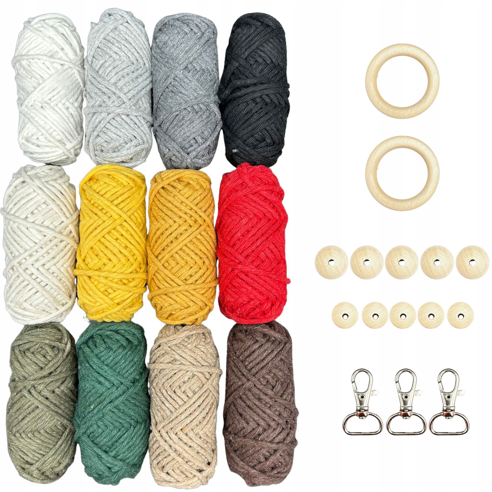 ZESTAW DO MAKRAMY NAUKI SZNUREK BAWEŁNIANY 12SZT 240M + DODATKI AKCESORIA