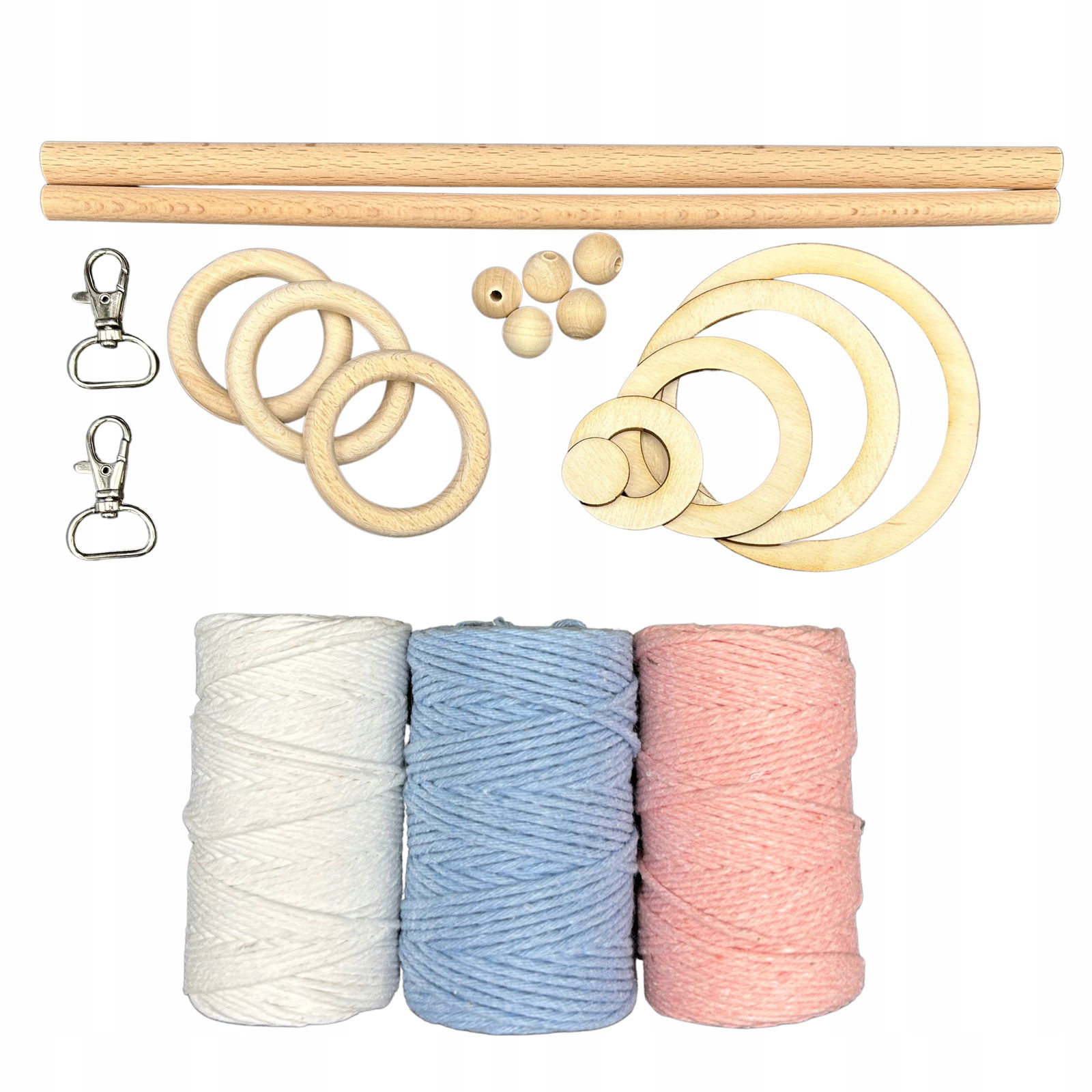 ZESTAW DO MAKRAMY SZNUREK BAWEŁNIANY 3SZT 180M + DODATKI NA PREZENT