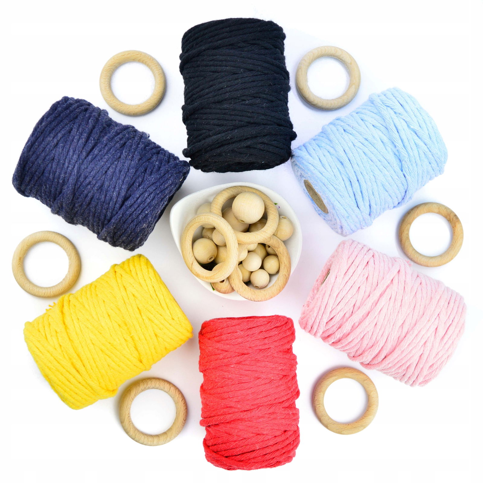 ZESTAW DO MAKRAMY SZNUREK BAWEŁNIANY 5MM 6X50M 6 KOLORÓW 300M + DODATKI