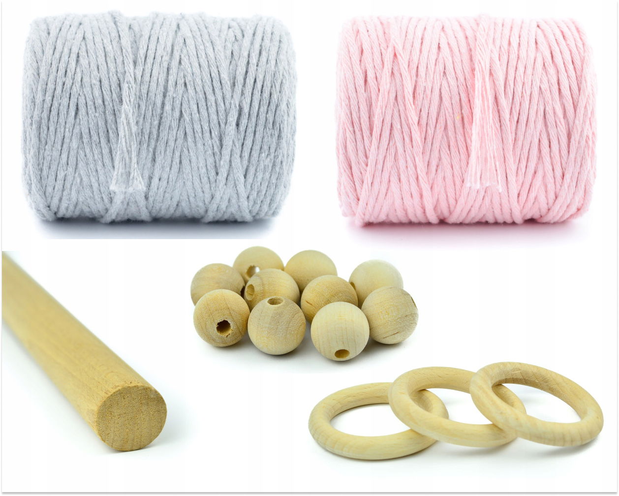 ZESTAW DO MAKRAMY SZNURKÓW BAWEŁNIANYCH 16 ELE. 3MM 200M 2 KOLORY + DODATKI