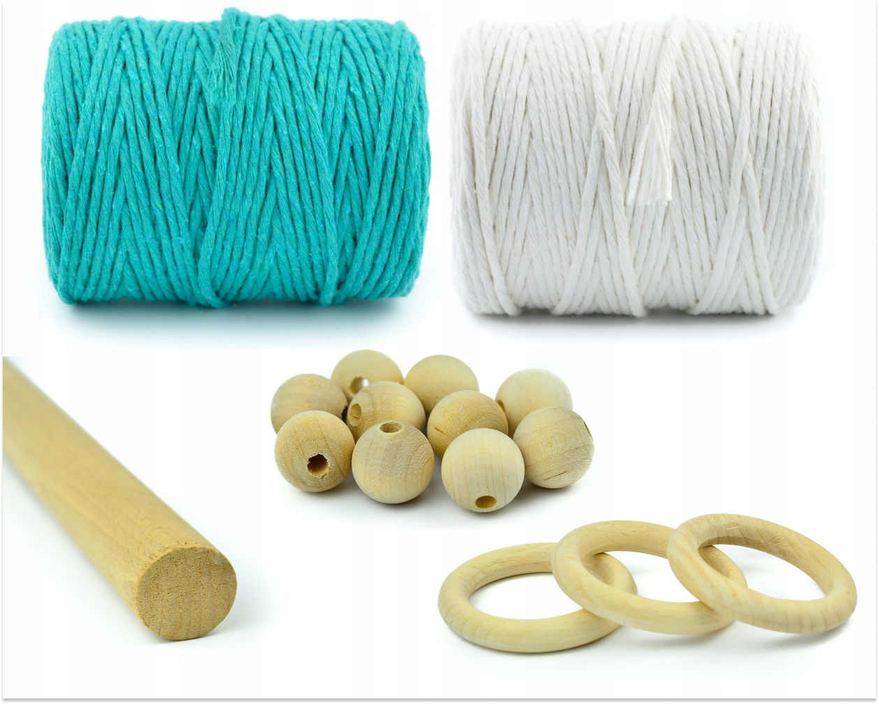 ZESTAW DO MAKRAMY SZNURKÓW BAWEŁNIANYCH 16EL. 3MM 200M 2 KOLORY + DODATKI