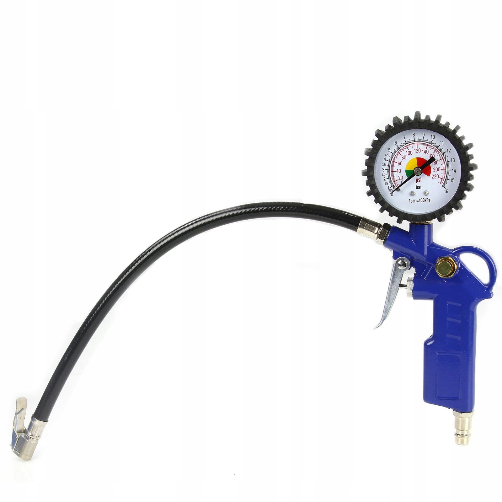 jest doskonały do pompowania i kontroli ciśnienia ogumienia pneumatycznego. Posiada gumową obudowę zegara. Wyposażony jest w zawór spustowy powietrza.