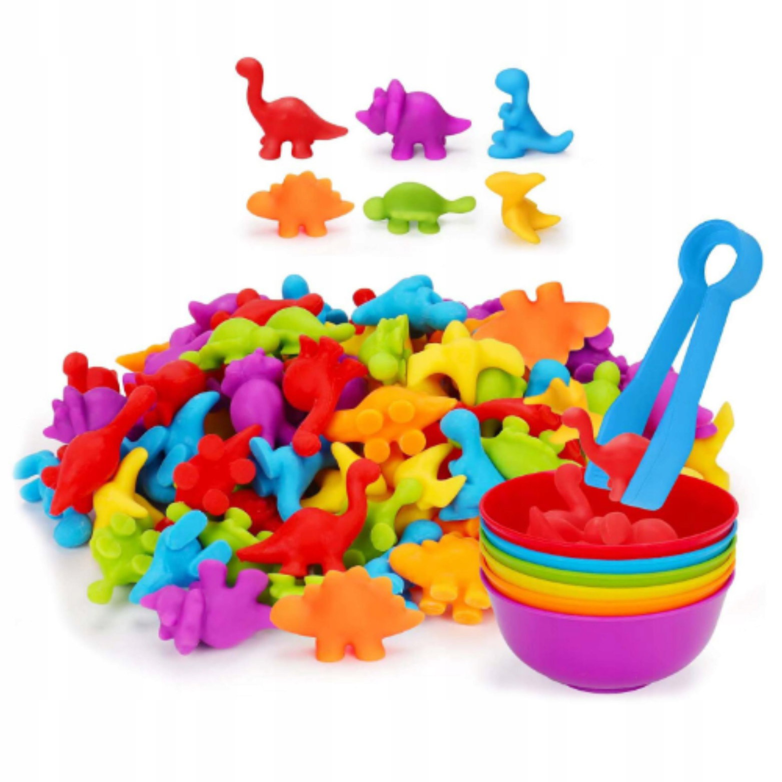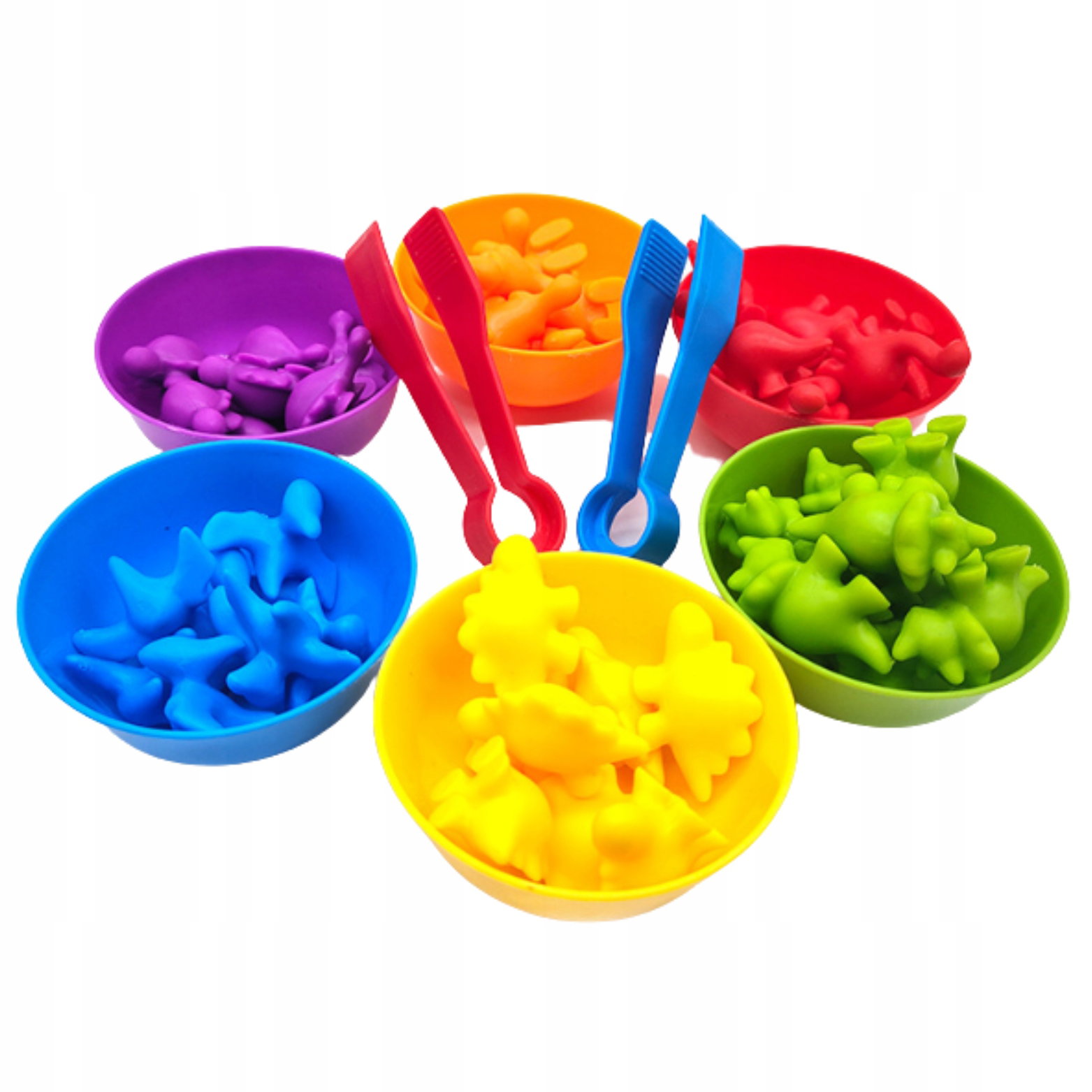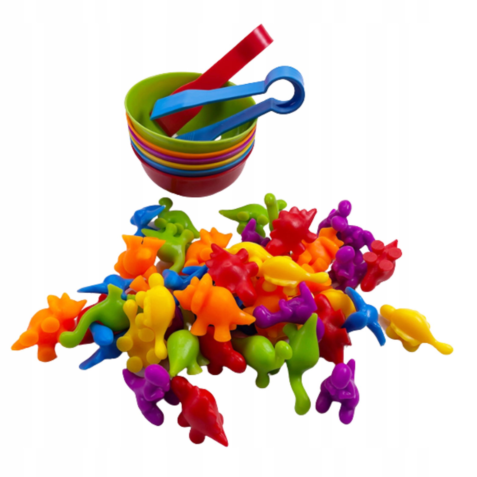 Gra polega na wykonywaniu precyzyjnych ruchów i skupieniu się na dopasowywaniu kolorów. Na początku, wysypujemy wszystkie dinozaury na stół, a następnie, układamy 6 kubeczków w różnych kolorach, tworząc miejsce docelowe dla naszych dinozaurów. Dziecko otrzymuje specjalny chwytak, którym będzie mogło chwytać i przenosić zwierzątka do odpowiednich kubeczków. Celem gry jest umieszczenie każdego dinozaura w kubeczku o identycznym kolorze. To wymaga od dziecka skupienia, koordynacji ruchowej i umiejętności rozpoznawania kolorów.