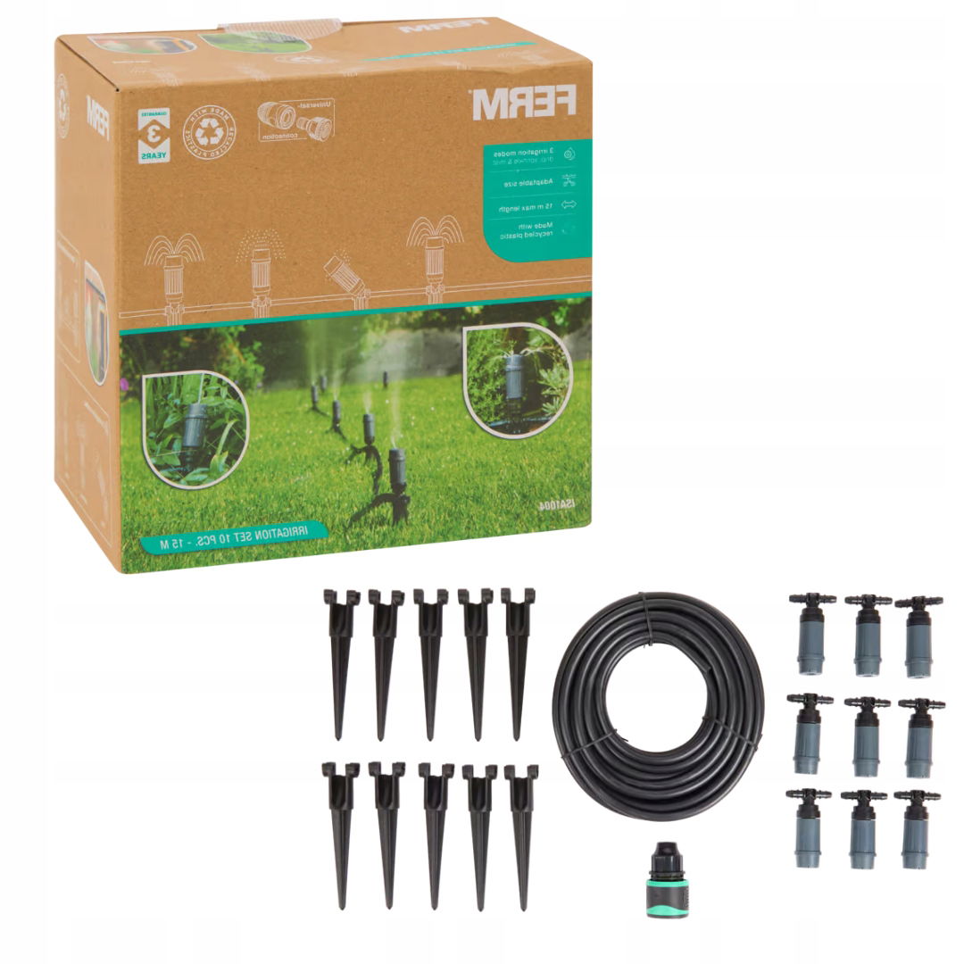 Zestaw do nawadniania trawnika kropelkowe rozpylanie mgiełka 15m FERM 10pcs