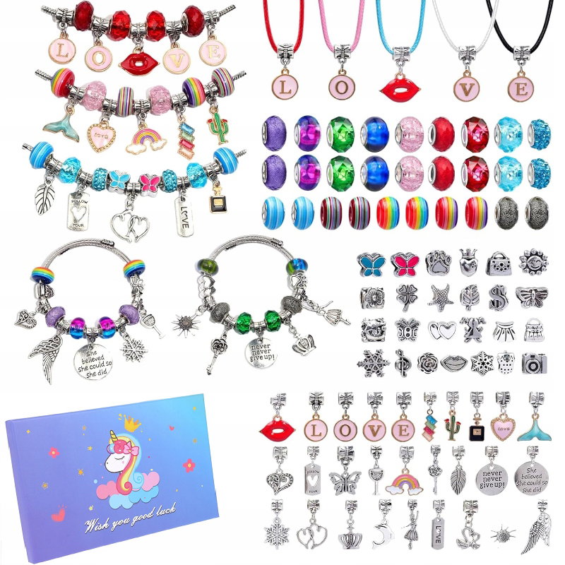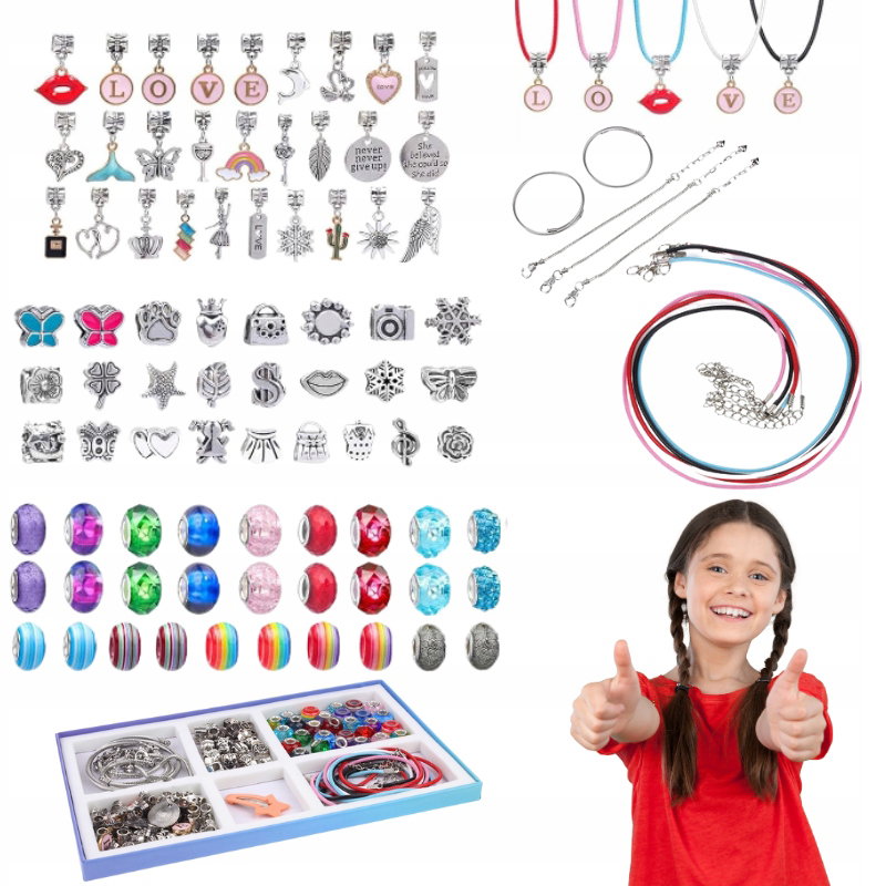 Zestaw do Robienia Bransoletek Biżuterii Koraliki Charms Zawieszki Prezent