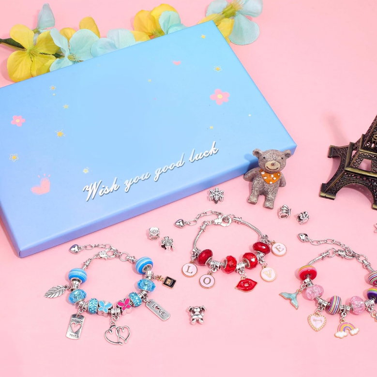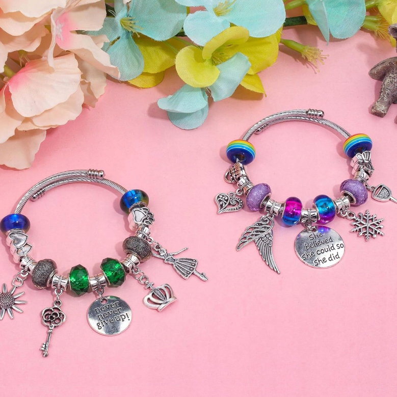✔️ Zawiera różne koraliki o pięknych wzorach, takie jak tęcze, korony, anielskie skrzydła, syreny i wiele innych. Dzięki niemu dzieci mogą tworzyć biżuterię o różnych motywach i stylach.
