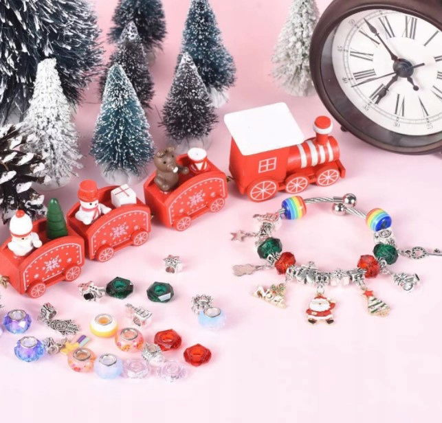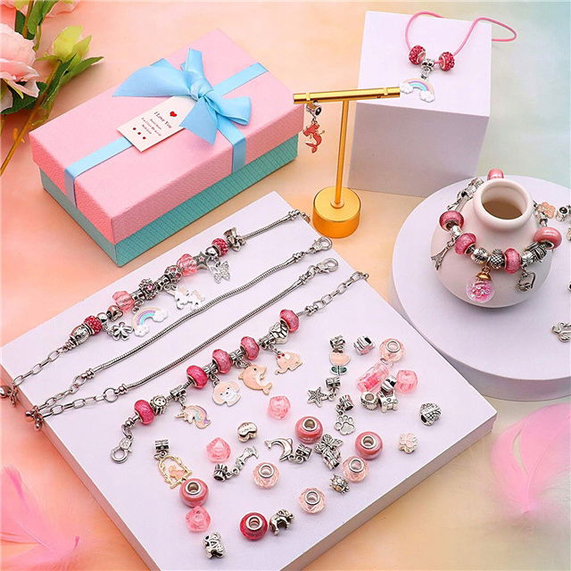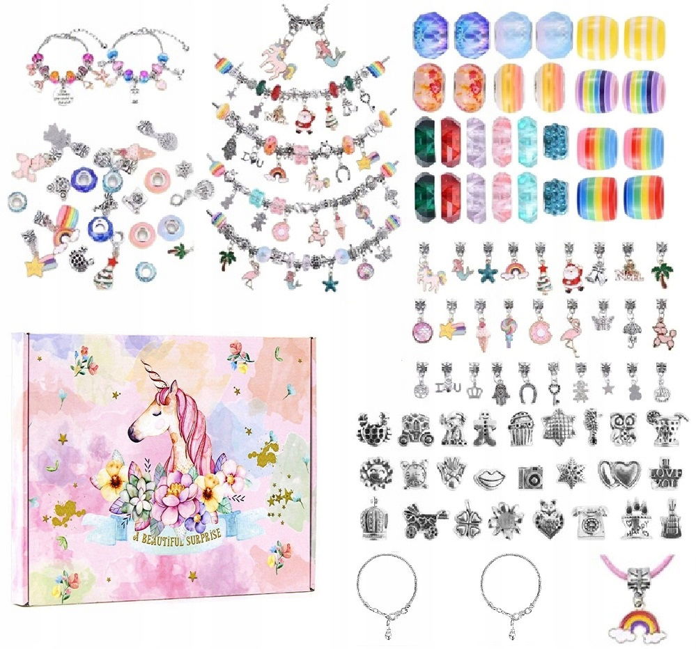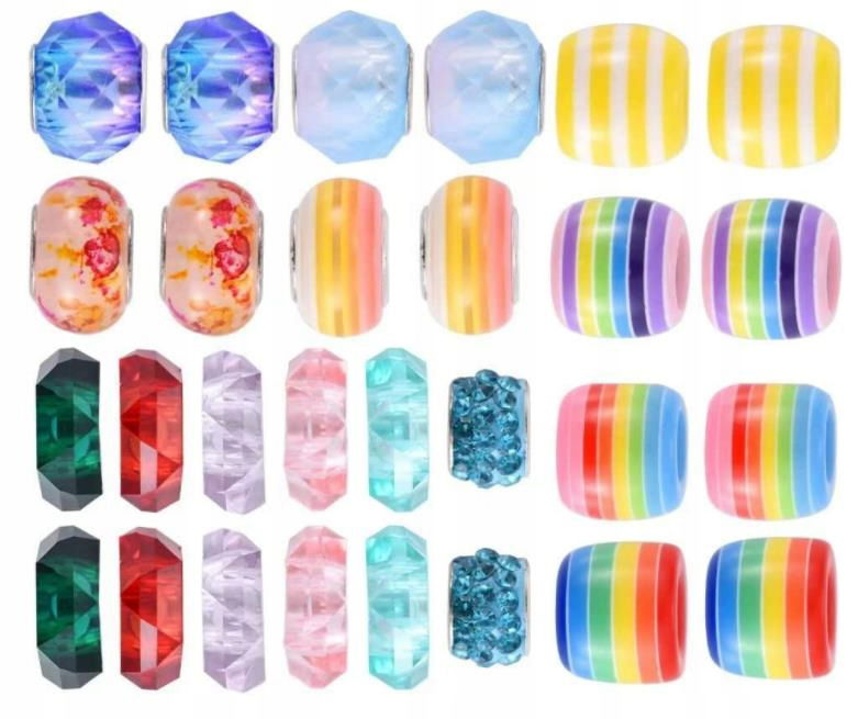 ⭐Zawiera zawiera 27-dużych koralików, 28x wisiorków, 28x kolorowe koraliki 2x bransoletki i 1 lina naszyjnika 1 pudełko razem 87 sztuk