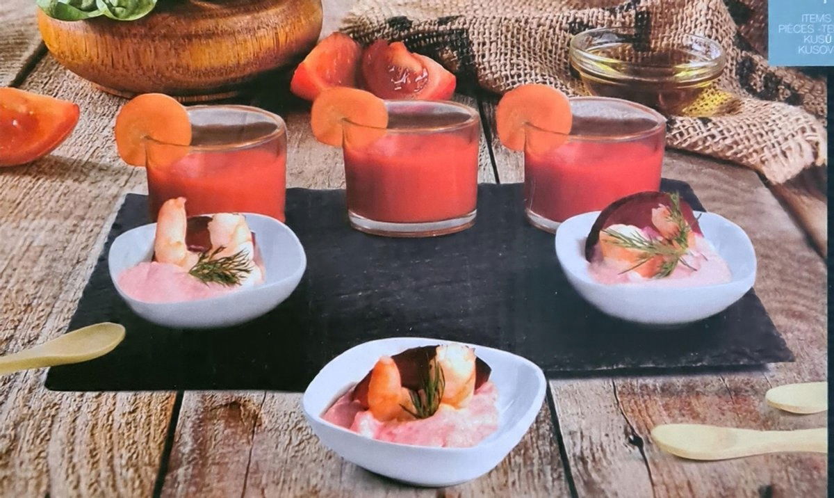 Zestaw do serwowania przekąsek i sosów jest przeznaczony dla do indywidualnego serwowania dań lub podawania przekąsek na stół, będzie więc idealnym pomysłem na imprezę lub świąteczny stół.