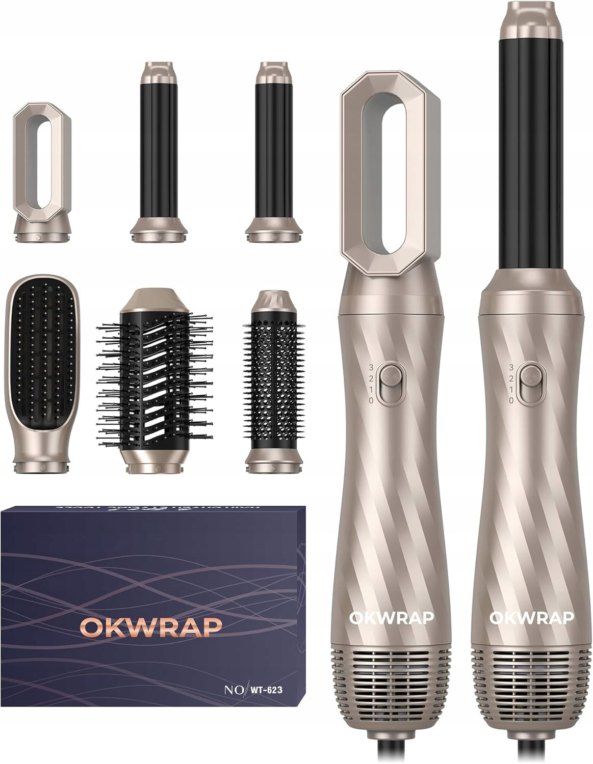Model OKWRAP WT-623 to kompletne rozwiązanie dla każdego rodzaju włosów – od prostych i cienkich po gęste loki. ?️ ✅ W zestawie znajdziesz aż 6 wymiennych końcówek, w tym innowacyjne nasadki do automatycznego kręcenia loków, szczotki wygładzające oraz wydajną dyszę do suszenia. Inteligentna kontrola ciepła dba o to, aby Twoje włosy pozostały lśniące, zdrowe i pełne naturalnej objętości, a ergonomiczna rączka sprawia, że manewrowanie urządzeniem jest niezwykle proste i wygodne! ? ?