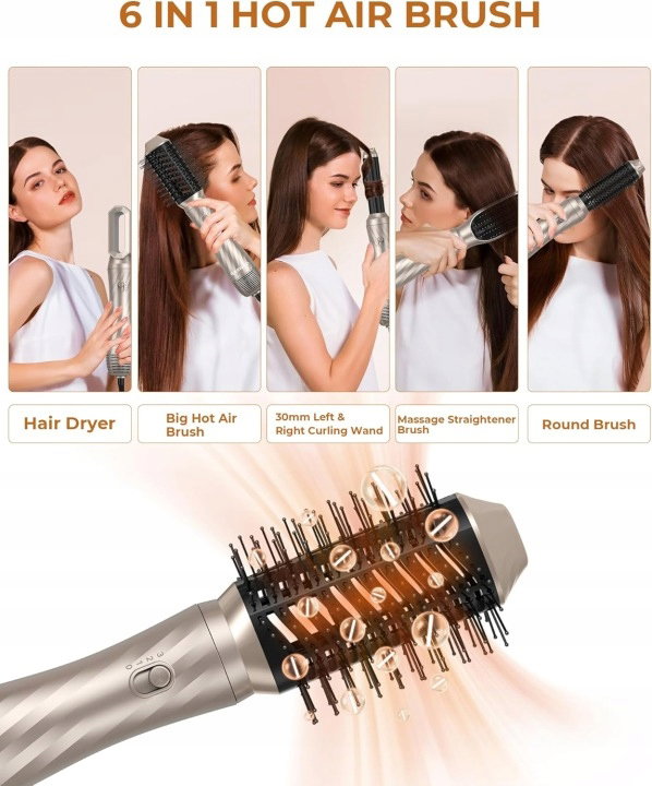 - 6 wymiennych nasadek: Jedno urządzenie zastępuje suszarkę, lokówkę, prostownicę oraz szczotkę termiczną! ⚙️ ?