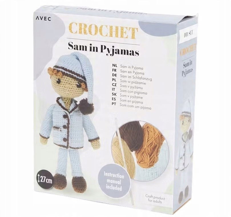 ZESTAW DO SZYDEŁKOWANIA RĘKODZIEŁA Z WŁÓCZKI AVEC CROCHET - SAM IN PYJAMAS