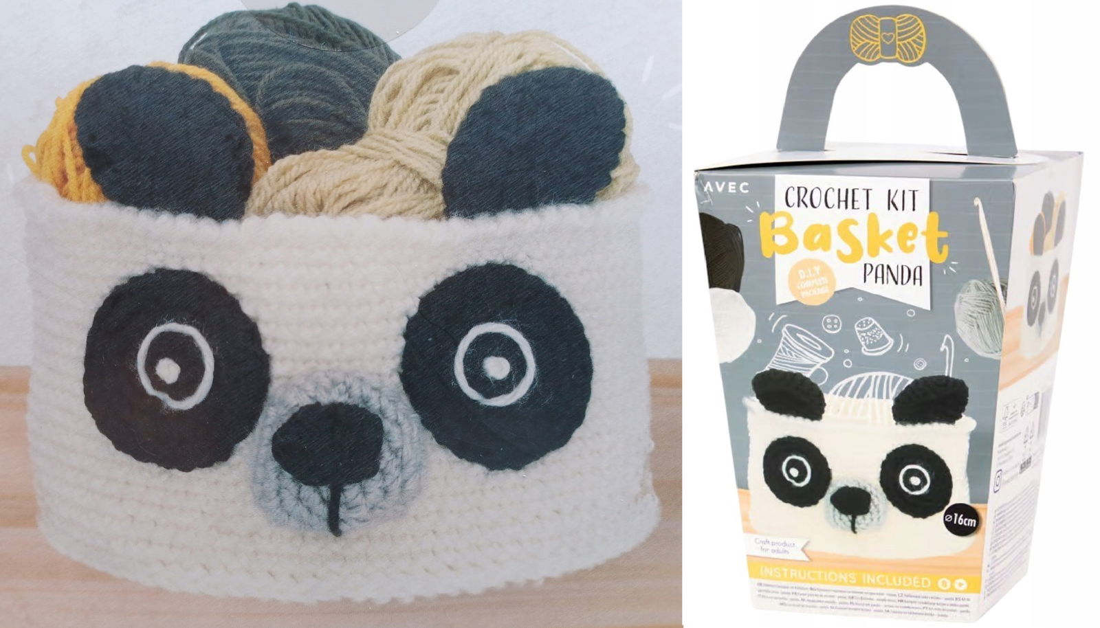 KOSZYK PANDA Z WŁÓCZKI NA PREZENT 16 CM