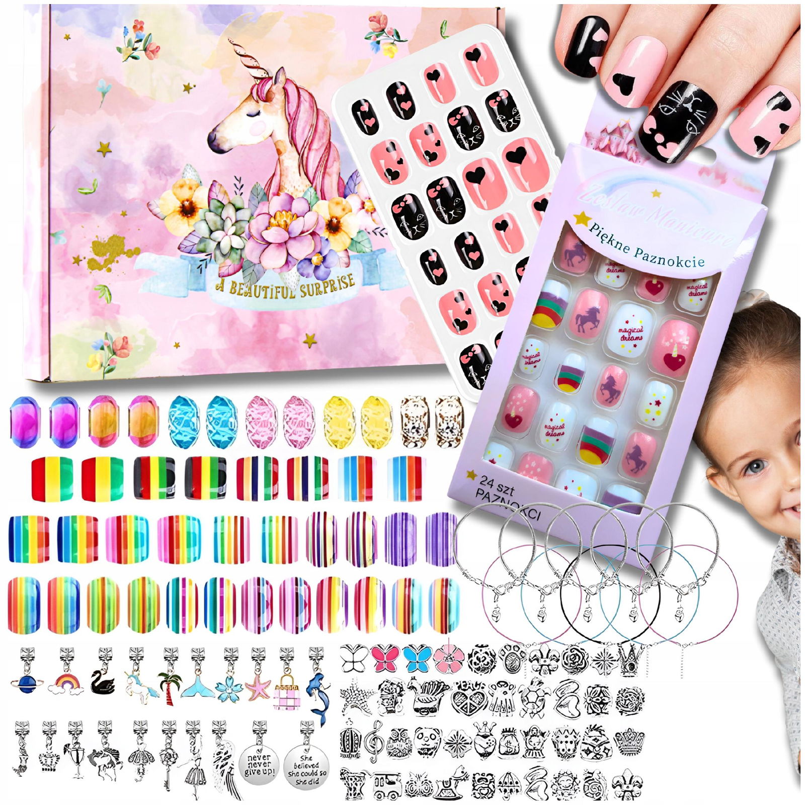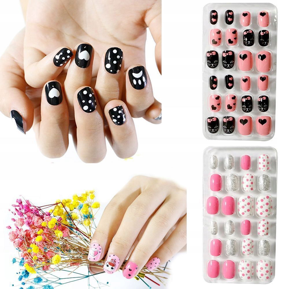 + 24x Naklejki Na Paznokcie Sztuczne Paznokcie Dla Dzieci Samoprzylepne Tipsy