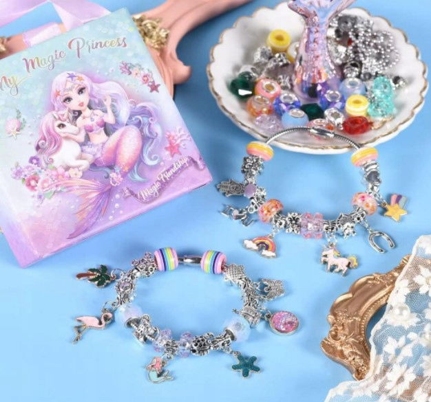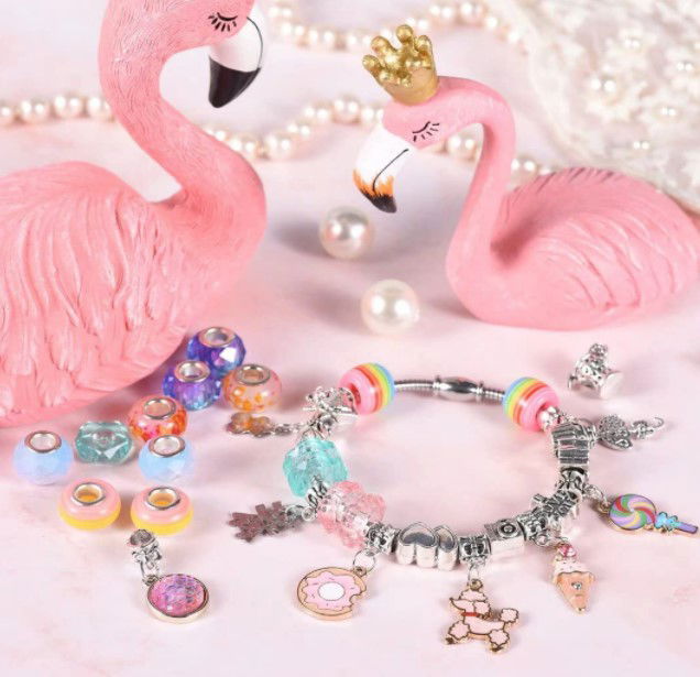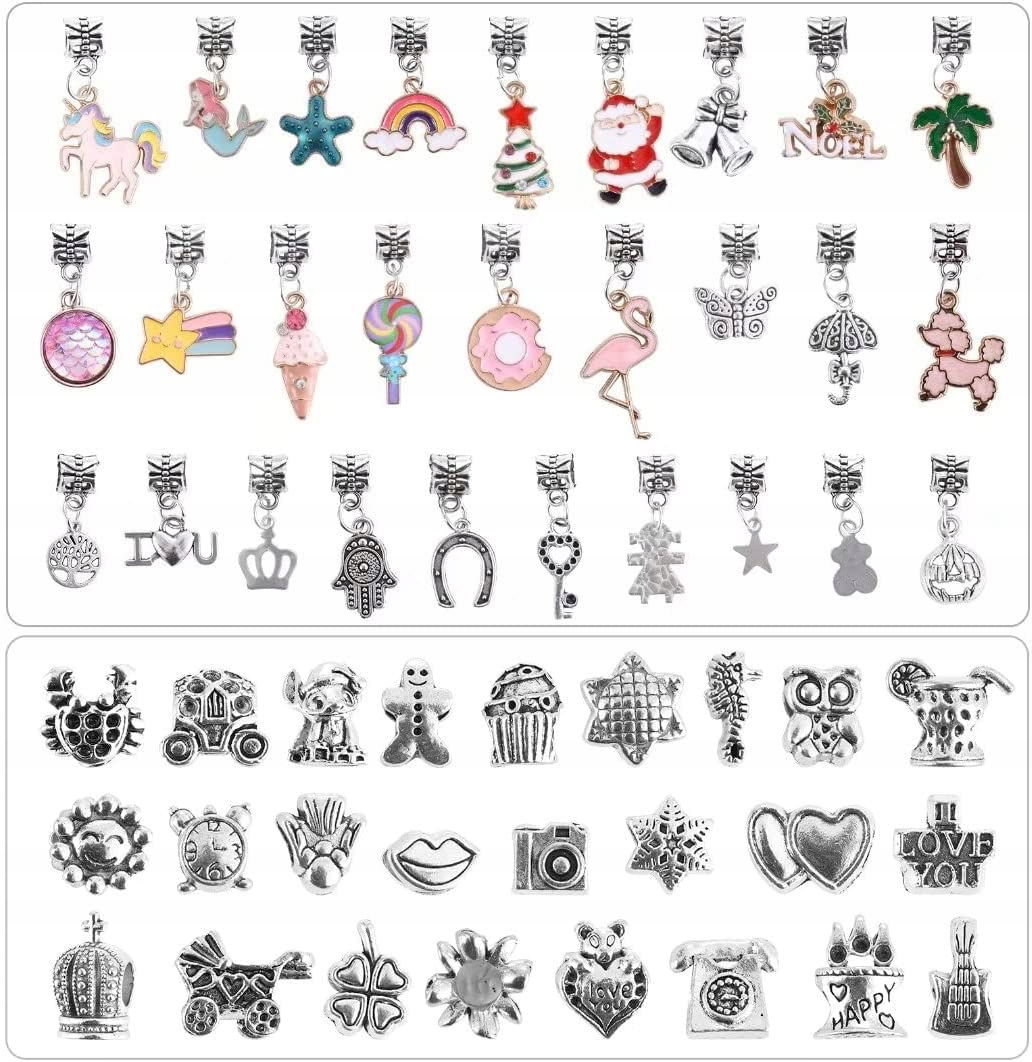 ⭐Zawiera zawiera 27-dużych koralików, 28x wisiorków, 28x kolorowe koraliki 2x bransoletki i 1 lina naszyjnika 1 pudełko razem 87 sztuk