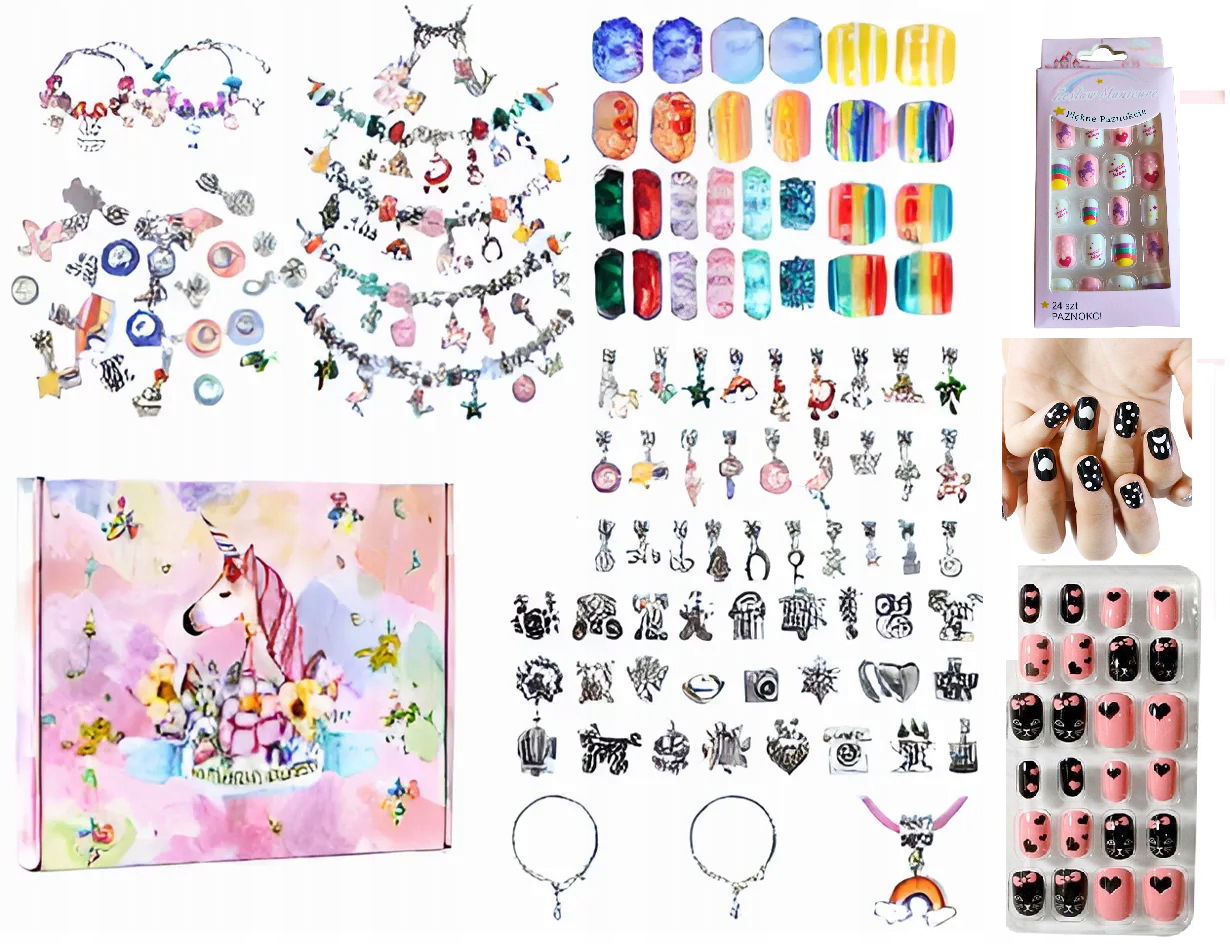 Zestaw Do Tworzenia Biżuterii Bransoletek Koraliki + Naklejki Na Paznokcie
