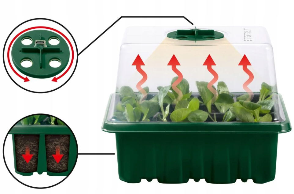 • 60 miejsc na sadzonki – idealne do domowej uprawy warzyw, ziół i kwiatów