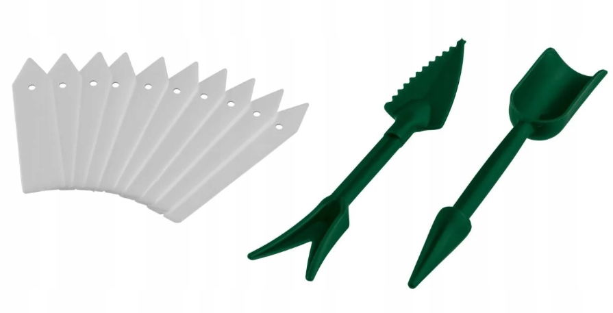 • Zawartość zestawu: 5 pojemników do sadzonek, 5 wkładów na doniczki, 5 pokrywek LED z wentylacją, 10 etykiet, kabel USB ze sterowaniem, łopatka z pikownikiem, grabki z widłami